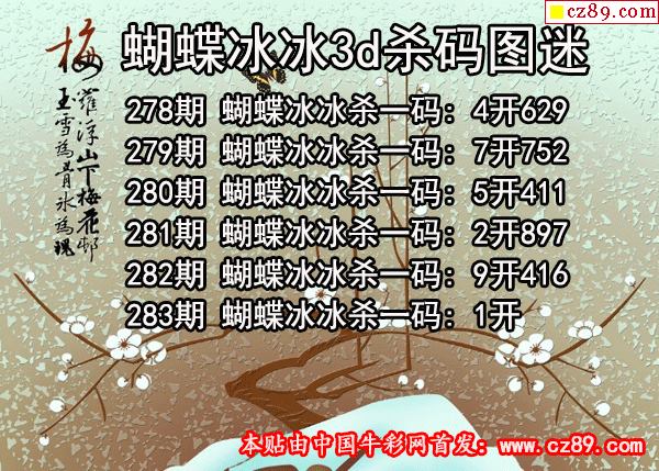 > 蝴蝶冰冰杀码2025283期3d图谜(原创)