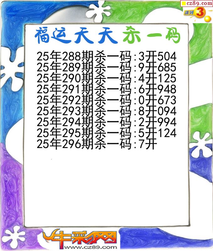 福运天天杀一码296期体彩P3图谜
